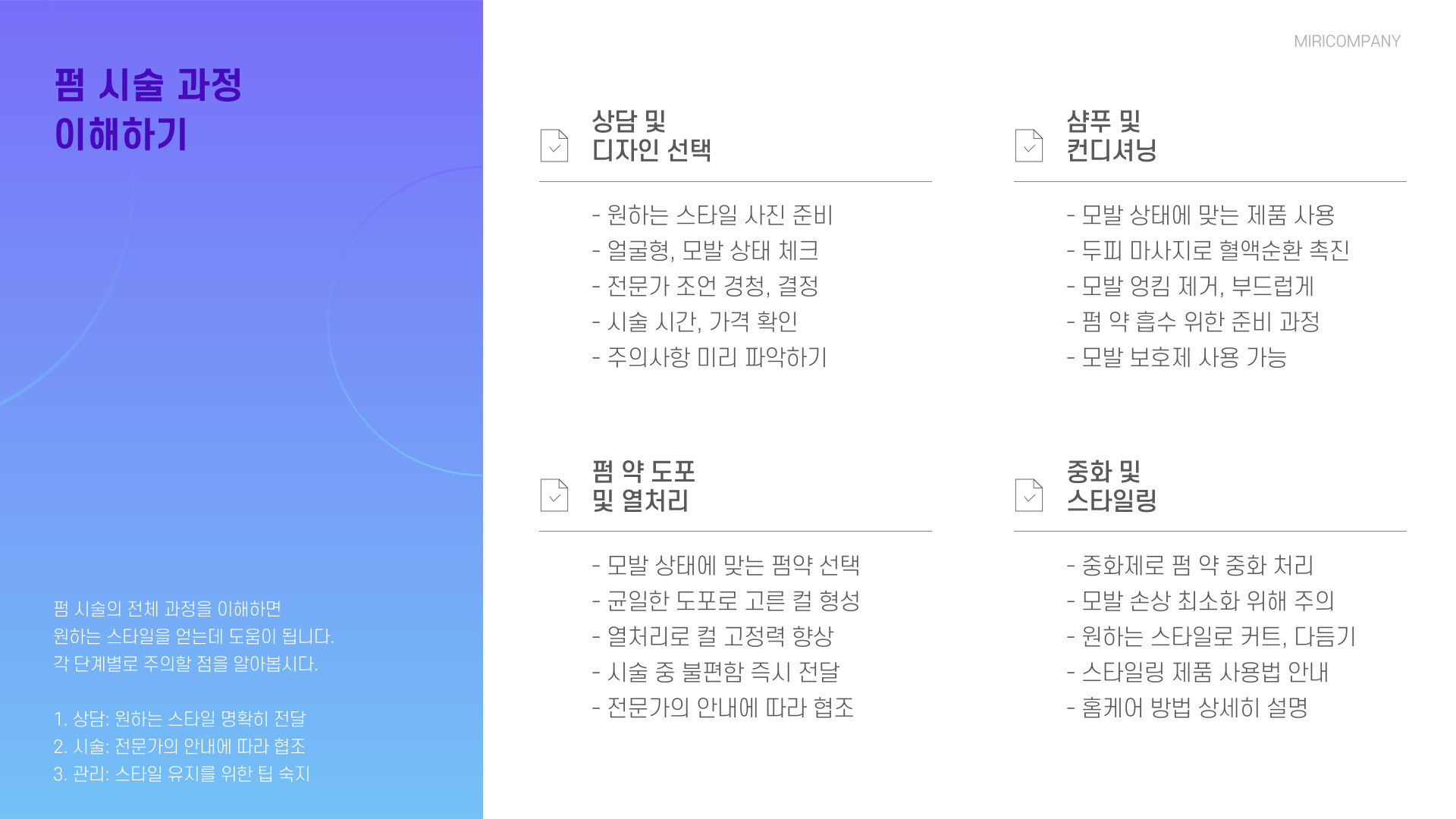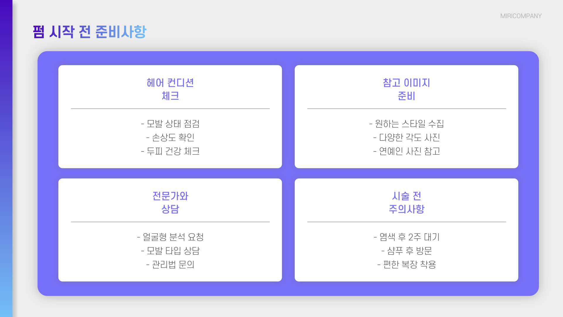 | 모발 상태 점검 | 손상 방지를 위해 트리트먼트 필요 |