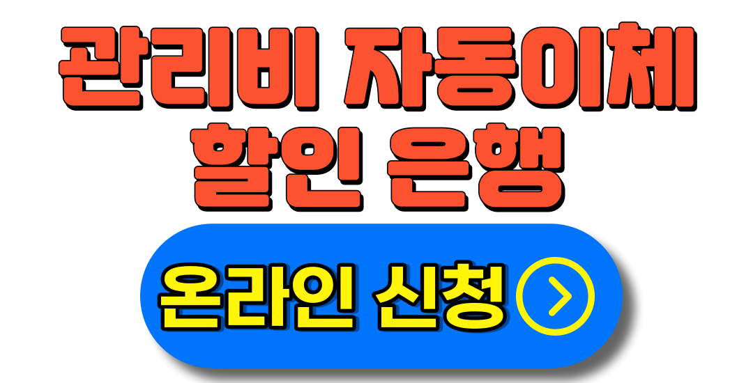 신용카드 이벤트: 일부 카드사에서는 아파트 관리비 결제 시 캐시백 혜택을 제공하는 이벤트를 진행하기도 합니다. 이벤트 내용은 카드사마다 다를 수 있으므로 해당 카드사의 이벤트 정보를 확인해 보세요. 다만, 대부분의 경우 이벤트는 신규 가입자에게만 적용되거나 일정 기간에 한정된 할인이기 때문에 지속적인 할인은 기대하기 어렵습니다.