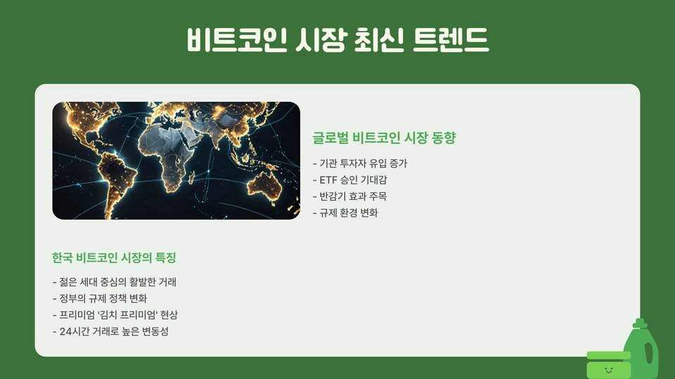 최근 비트코인 시장에서는 몇 가지 주요 트렌드가 나타나고 있습니다. 첫째, 기관 투자자의 증가가 눈에 띕니다. 많은 기관들이 비트코인을 자산으로 편입하고 있으며, 이는 비트코인 가격 상승에 긍정적인 영향을 미치고 있습니다. 이러한 흐름은 비트코인에 대한 신뢰도를 높이고, 더 많은 개인 투자자들이 시장에 진입하는 계기가 되고 있습니다.