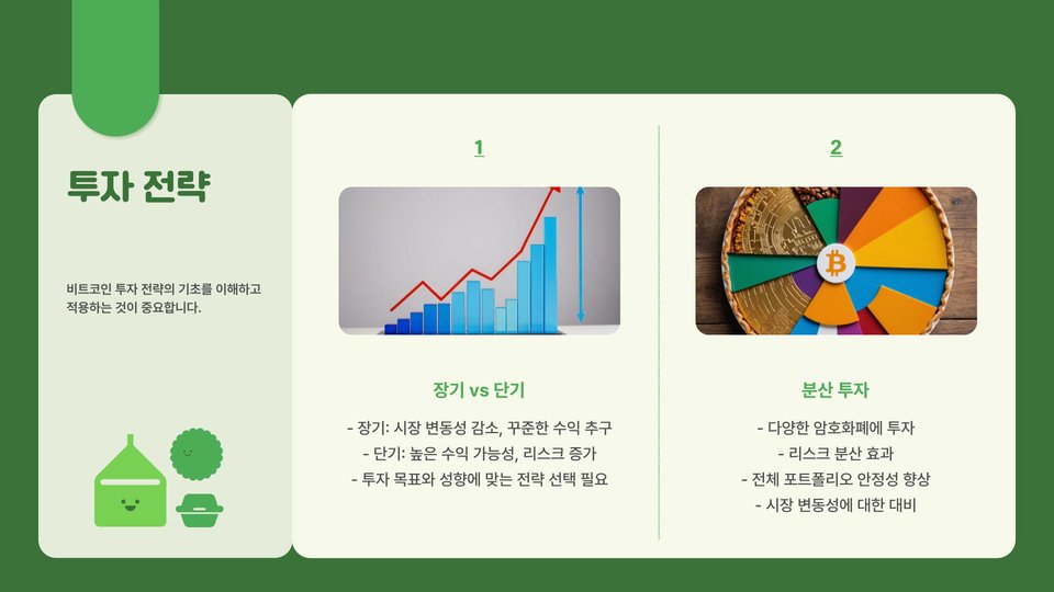 또한, 분산 투자를 통해 리스크를 줄이는 것도 중요한 전략입니다. 비트코인 외에 다른 암호화폐나 자산에도 투자하여 전체 포트폴리오의 위험을 최소화할 수 있습니다.