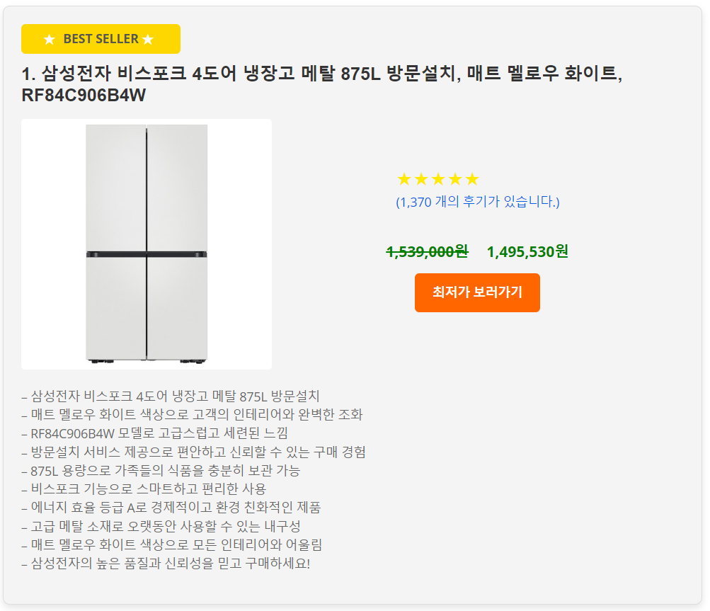 냉장고는 현대 가정에서 필수적인 가전제품 중 하나입니다. 하지만 가격이 비싸기 때문에 최저가로 구매하는 것이 중요합니다. 냉장고의 최저가를 찾는 방법에 대해 알아보겠습니다.