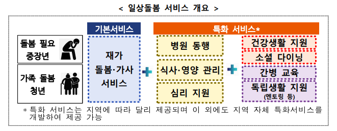 2023년 7월부터 시행되는 일상 돌봄 서비스는 보건복지부가 질병, 고립 등으로 인해 돌봄이 필요한 만 40 ~64세 중장년과 만 13 ~ 34세 가족 돌봄 청년 들을 대상으로 그동안 소외되었던 복지 서비스를 제공하는 정책입니다. 일상 돌봄 서비스 신청 방법과 신청 가능 지역을 확인해 보시기 바랍니다.