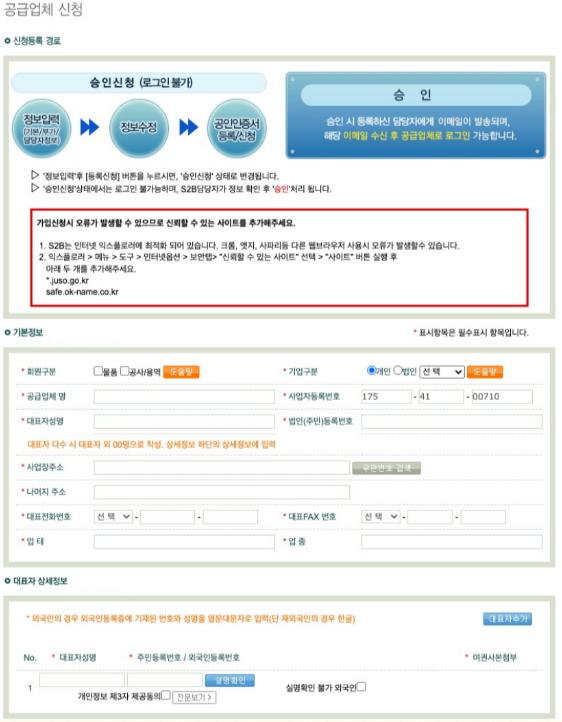 공급업체로 등록을 하기 위해서는 범용공동 인증서가 있어야 합니다.