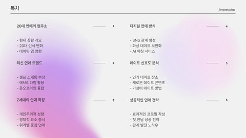 20대연애는 끊임없이 변화하는 트렌드와 함께 다양한 방식으로 이어지고 있습니다. 소통의 중요성을 깨닫고, 시간을 효율적으로 관리하며, 목표를 설정하는 것은 건강한 관계를 유지하기 위한 필수 요소입니다. 연애는 단순한 감정 교류가 아닌 서로의 삶을 존중하고, 함께 성장하는 과정임을 잊지 마세요. 이러한 요소들을 잘 활용한다면, 20대의 연애는 더욱 풍요롭고 의미 있는 시간이 될 것입니다.
