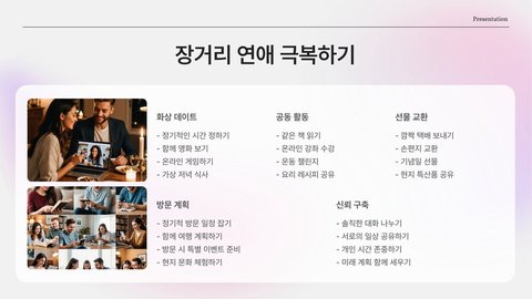 또한, 소통의 스타일을 다양하게 시도해보세요. 문자로만 대화하기보다는 영상 통화나 음성 메세지를 통해 보다 함께하는 느낌을 전달하세요. 각 매체의 장점과 단점을 이해하고, 상대방의 반응에 따라 조절하는 감각이 필요합니다. 이는 서로에게 더욱 친밀감을 감지할 수 있는 계기가 됩니다.