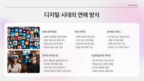 - 디지털 플랫폼의 영향으로 연애 방식 변화