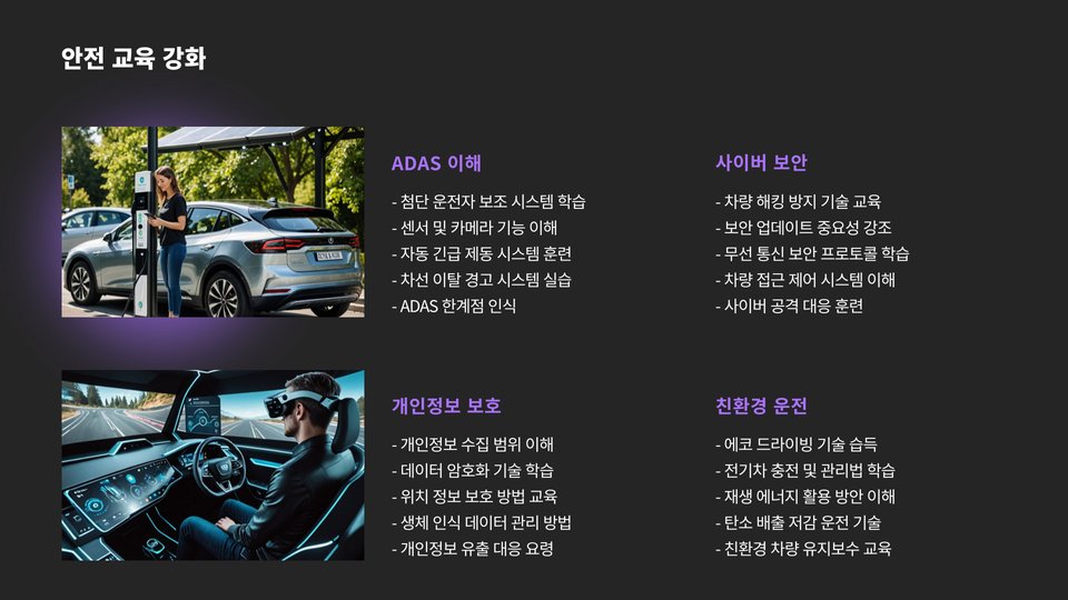 | AI 교육 | 개인 맞춤형 운전 교육 제공 |