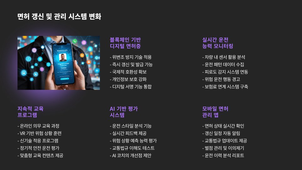 | AI 교육 | 개인 맞춤형 운전 교육 제공 |