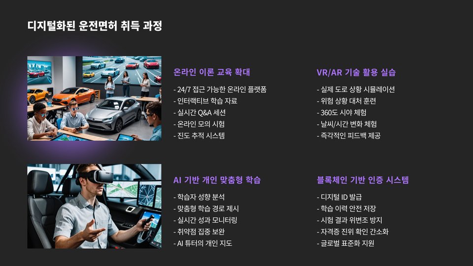 | VR/AR 활용 | 실제 도로 상황 시뮬레이션 |