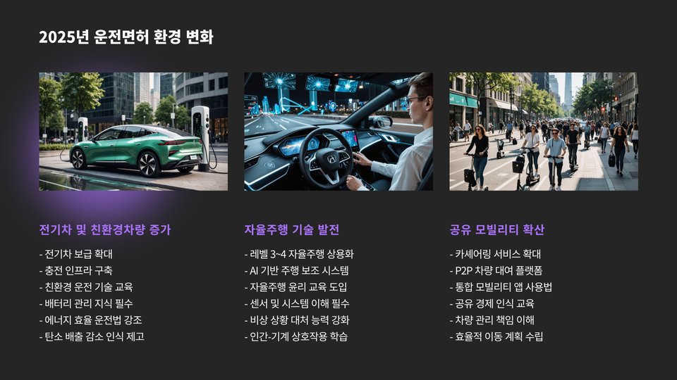 Tags: 운전면허, 디지털화, AI 교육, VR 기술, 환경친화적, 운전 교육, 전기차, 하이브리드, 안전 운전, 2025년 트렌드