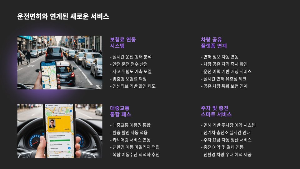 | AI 교육 | 개인 맞춤형 운전 교육 제공 |
