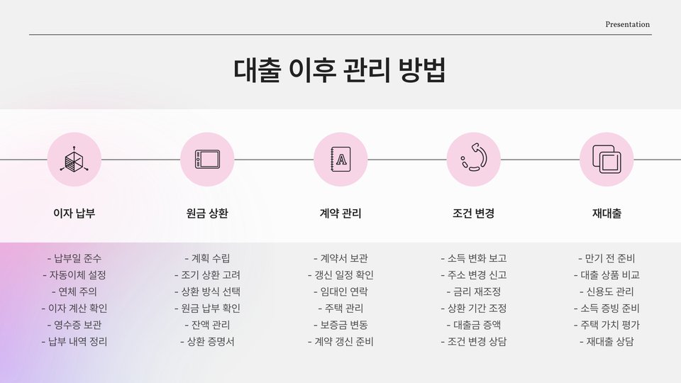 대출 신청 후, 성공적인 진행을 위해 중요한 몇 가지 전략이 있습니다. 첫째, 정확한 현금 흐름 관리가 필요합니다. 대출금을 받기 전부터 월세, 관리비, 대출 상환 등을 세밀하게 계획하는 것이 중요합니다. 이에 따라 재정 관리가 용이해지고, 이로 인해 안정적인 주거 생활이 가능합니다.