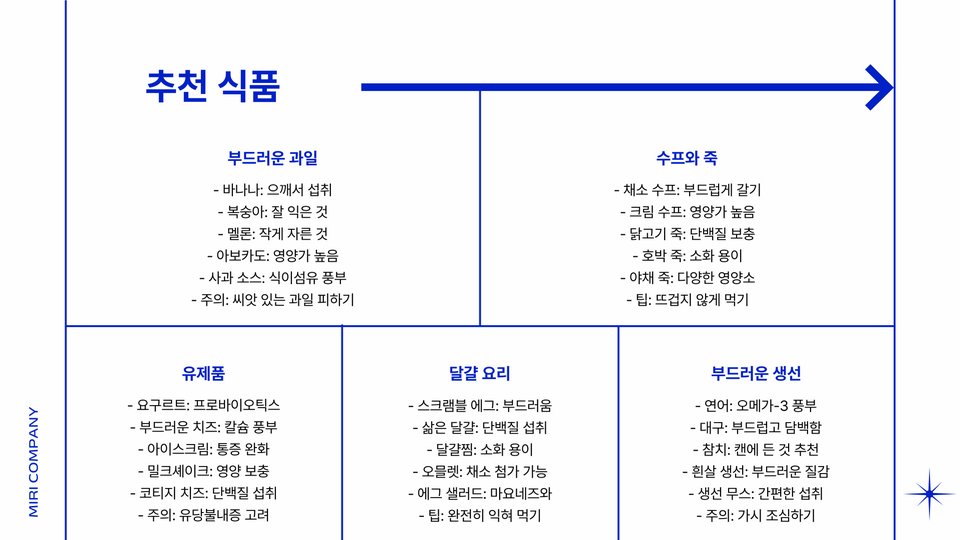- 부드러운 음식 선택으로 통증 완화